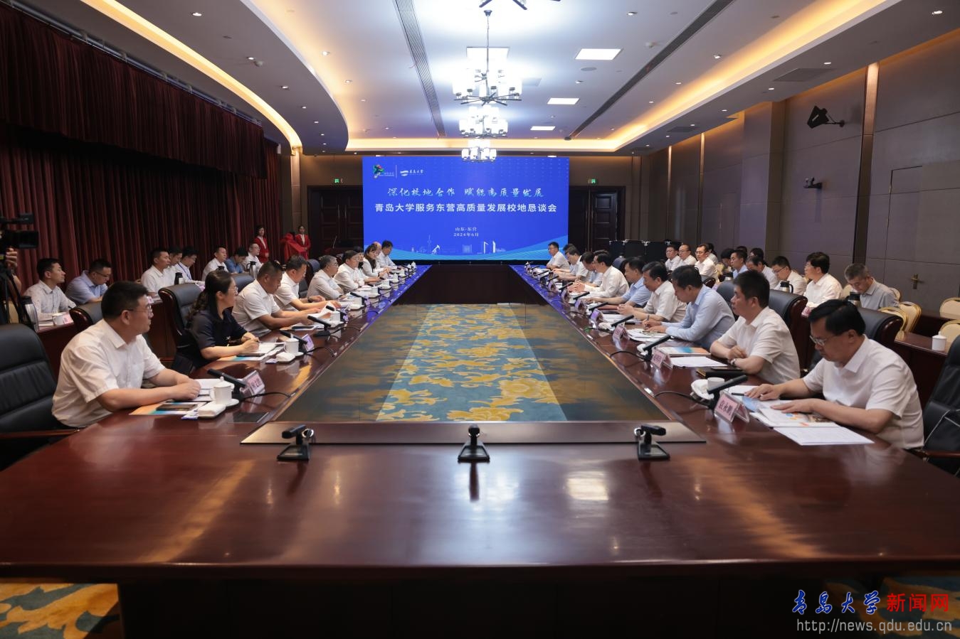 新聞網(wǎng)訊 6月14日下午,學(xué)校黨委書記胡金焱、校長魏志強(qiáng),黨委常委、副校長劉恩賢,副校級(jí)領(lǐng)導(dǎo)劉彩云一行赴東營市出席青島大學(xué)服務(wù)東營高質(zhì)量發(fā)展校地懇談會(huì),旨在深化校地合作,賦能區(qū)域高質(zhì)量發(fā)展。懇談會(huì)在東營賓館307會(huì)議室舉辦。東營市委副書記、市長陳必昌,常務(wù)副市長何憲卓,副市長、市政府秘書長師輝,東營市政協(xié)副主席常淮誠等出席會(huì)議。會(huì)議由何憲卓主持。
