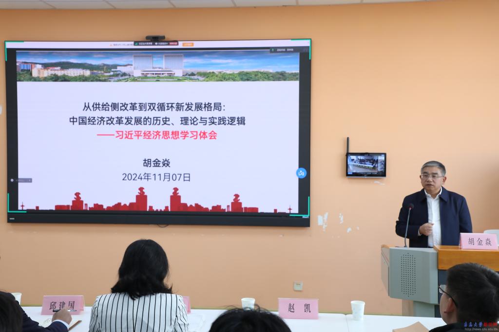 新聞網訊 11月7日,為深入學習貫徹黨的二十屆三中全會和全國教育大會精神,校黨委書記胡金焱在金家嶺校區守實樓423教室為經濟學院師生講授思政課。經濟學院2023級本科生及學院領導班子成員現場聆聽思政課,其他師生線上參加學習。