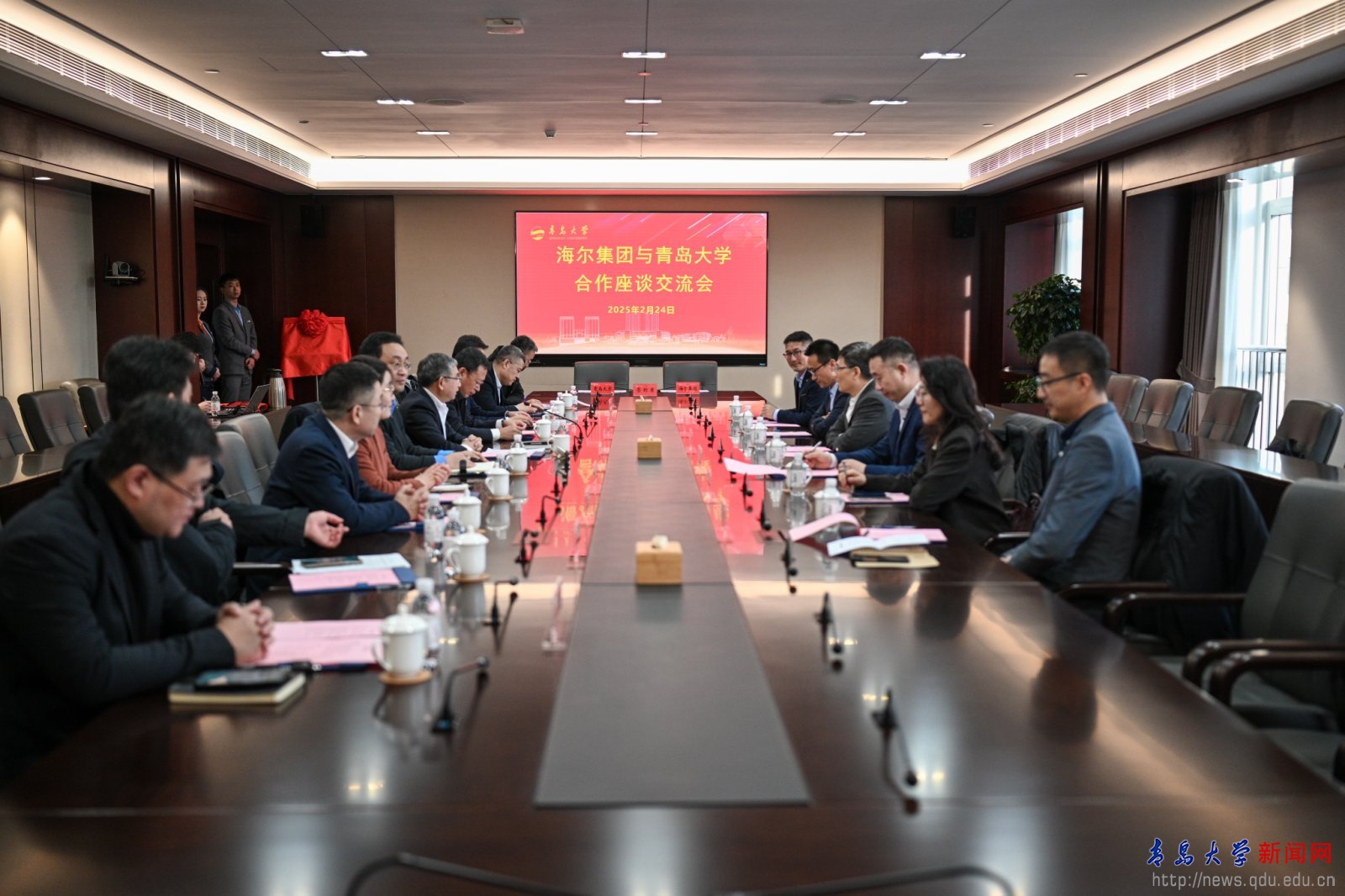 胡金焱對周云杰一行的到來表示熱烈歡迎,他詳細介紹了學校近年來在學科建設、人才培養、教育教學、科學研究、服務社會等方面的情況,并對海爾集團對學校高質量發展給予的支持表示感謝。他指出,學校始終堅持從服務中找資源、在貢獻中求發展,采取積極政策吸引優秀企業深度參與學校建設,現階段的海爾集團正以穩健的增長態勢和卓越的業績表現,彰顯了在家電行業的領軍地位和強大實力。青島大學與海爾集團在科技創新、人才培養等方面具有高度的戰略契合度,雙方的合作具有“天時地利人和”的優越條件。下一步,雙方將通過共建卓越工程師學院和重點實驗室,持續推進校企協同育人,打造新時代人才培養模式;配優配強校企導師隊伍建設,以有力的舉措深入推進和落實各項合作,深化科技合作、產教融合,開啟雙方合作新篇章。