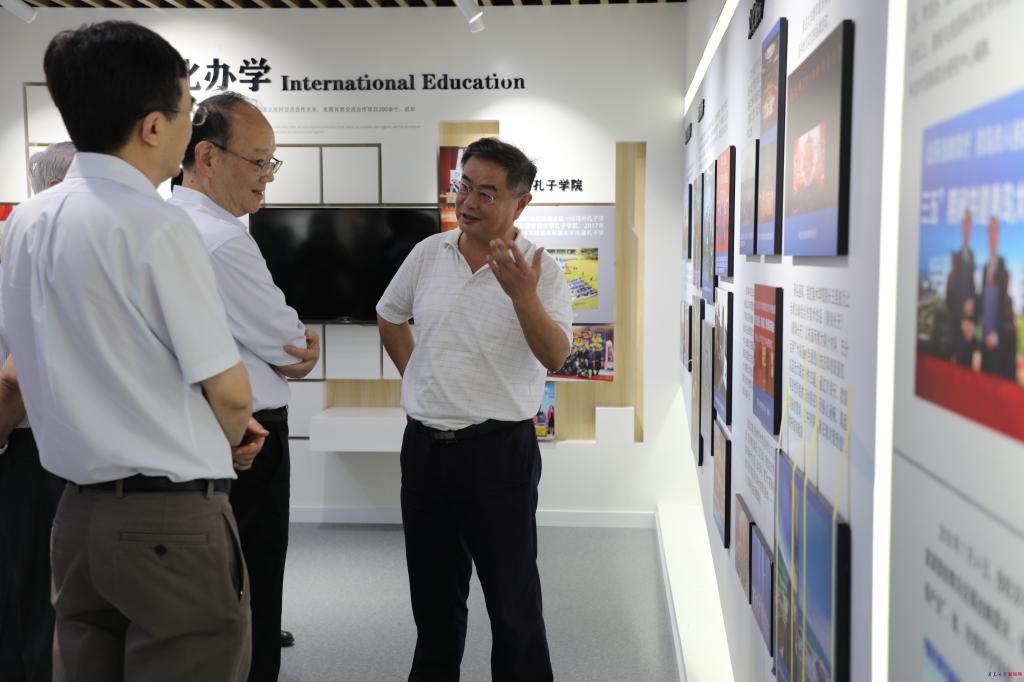 高勇一行考察了千噸級紡織專用海藻纖維自動化生產線,參觀了我校生物多糖纖維成形與生態紡織國家重點實驗室和校史館。