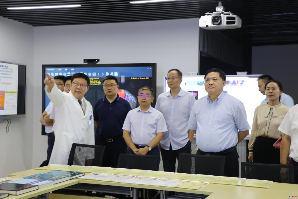 唐波一行先后參觀了數字醫學與計算機輔助手術研究院、腫瘤精準醫學研究院、省部共建生物多糖纖維成形與生態紡織國家重點實驗室。在省部共建國家重點實驗室,夏東偉介紹了我校概況和近年在人才培養、科研團隊、成果轉化、服務社會、綜合排名等方面取得的成就。實驗室常務副主任夏延致匯報了實驗室發展定位與建設運行情況,以及海洋纖維新材料的研發與產業化發展。
