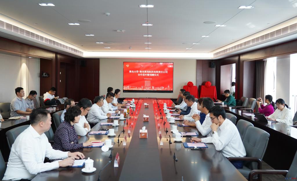 在胡金焱、王澤楷的見證下,于紅波和張海英分別代表雙方簽署《青島大學-青島黃海制藥有限責任公司戰略合作協議》。根據協議,黃海制藥向青島大學教育發展基金會捐贈資金用于支持青島大學教育事業發展,學校發揮人才培養、醫學學科建設及附屬醫院等方面的綜合優勢,為集團決策咨詢、科技研發聯合攻關、醫養健康產業、在職人員培訓等提供支持;雙方將在醫藥及相關領域開展科研與人才培養合作,互聘專家擔任兼職教授、研究生導師,共建本科生實習教學基地及研究生聯合培養基地。