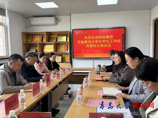 新聞網訊 4月24日上午,明泉集團董事局辦公室副主任吳國亮一行到化學化工學院訪問交流,在博觀樓509會議室舉行校企合作座談交流會。化學化工學院院長畢賽、黨委副書記李詠沙以及師生代表參加了會議。雙方就人才培養、科研合作、就業對接等議題展開深入交流,共繪校企協同發展藍圖。