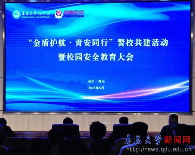 新聞網訊 5月15日下午,藥學院聯合青島市公安局市南分局金門路派出所舉辦的“金盾護航·青安同行”警校共建活動暨校園安全教育大會在醫(yī)學教育綜合樓學術報告廳順利舉行。本次大會旨在進一步深化警校聯動機制,強化校園安全教育,提升師生的安全防范意識與應急處理能力,為校園安全筑牢防線。