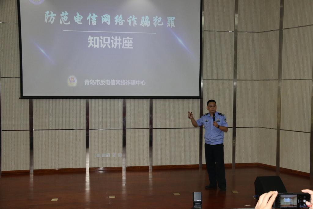 啟動儀式結束后,青島市公安“金盾”志愿服務隊隊員、市刑警支隊中隊長祝小楠為與會高校師生學生做了題為《防范電信網絡詐騙犯罪知識講座》的專題培訓。結合典型案例,生動詳細地介紹了近年來高校電信詐騙的發展趨勢、呈現特點、常見手法以及防范措施,有效提升了廣大師生防騙意識和識詐能力。