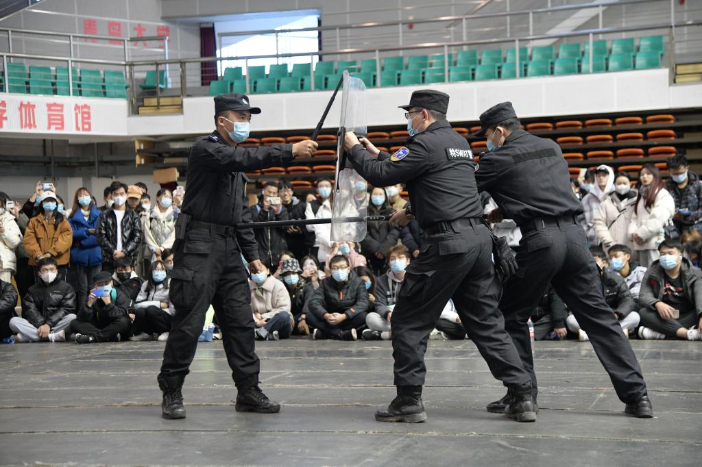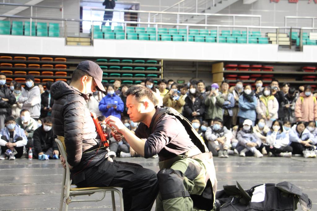 新聞網(wǎng)訊 為進(jìn)一步落實(shí)黨史學(xué)習(xí)教育“我為師生辦實(shí)事”活動(dòng),健全學(xué)校安全應(yīng)急聯(lián)動(dòng)機(jī)制,增強(qiáng)學(xué)校應(yīng)對(duì)處置各類(lèi)突發(fā)事件的指揮決策和統(tǒng)籌協(xié)調(diào)能力,普及安全避險(xiǎn)知識(shí),提高學(xué)生和教職工自救互救能力,11月8日下午,由黨委宣傳部、黨委學(xué)生工作部、黨委保衛(wèi)部聯(lián)合青島市公安局、嶗山公安分局在校體育館組織開(kāi)展校園反恐、反詐、網(wǎng)絡(luò)安全教育培訓(xùn)暨校園反恐應(yīng)急處置演練。