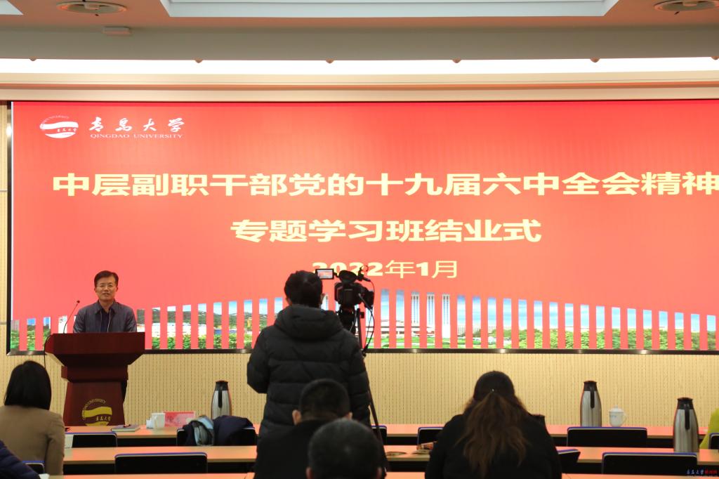 新聞網(wǎng)訊 1月5日下午,我校中層副職干部黨的十九屆六中全會(huì)精神專題學(xué)習(xí)班班級(jí)交流研討會(huì)暨結(jié)業(yè)式在會(huì)議中心404舉行。校黨委常委、組織部部長徐龍飛出席交流會(huì)并講話。