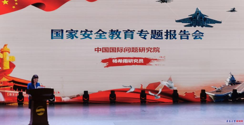 新聞網訊 近日,我校在青大劇院舉辦國家安全教育專題報告會。校黨委常委、副校長劉彩云主持報告會,黨委常委、組織部部長徐龍飛出席報告會。