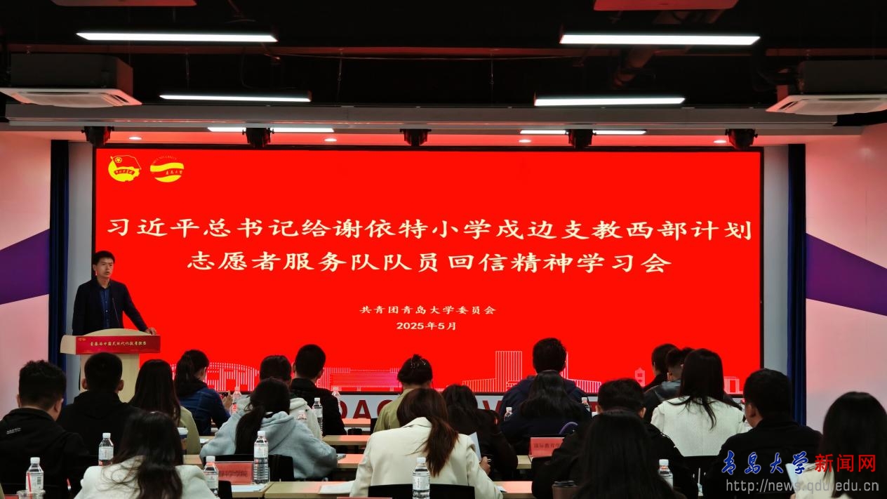 校團委副書記楊國慶領學了習近平總書記的重要回信精神和共青團中央就深入學習宣傳貫徹習近平總書記重要講話和重要回信精神作出的部署。校團委志工部部長、我校西部計劃負責人徐國輝介紹了我校西部計劃情況并分享了自己的學習感悟。2024年度青年馬克思主義者培養工程全國班優秀學員、文學與新聞傳播學院2024級研究生代表谷麗林,分享了她在青馬工程培訓時的學習實踐經歷與青年擔當思考。